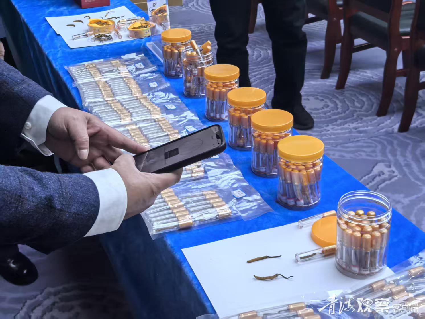 用微信小程序掃碼鑒真蟲草真假。青海日報融媒體記者 羅珺 攝