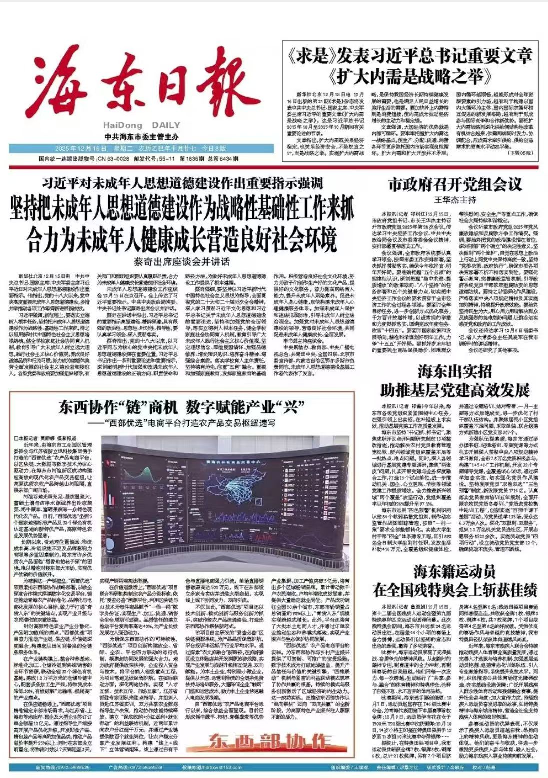 近年來,由海東市工業園區管理委員會與江蘇省新立訊科技集團攜手打造的“西部優選”農產品電商平臺,以區塊鏈、大數據等數字技術為核心驅動力,在海東市河湟新區成功構建起高效的現代化農產品交易樞紐,讓高原優質農牧產品跨越山河阻隔,直供東部廣闊市場。