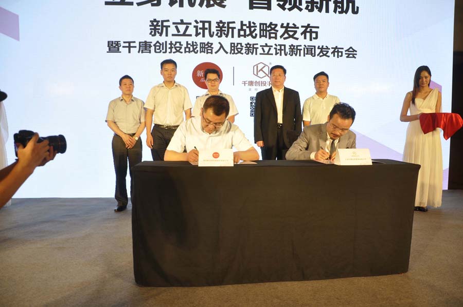 2016年7月18日,千唐創投與新立訊在上海浦東麗思卡爾頓酒店簽署戰略合作協議,千唐創投宣布正式入股新立訊,以資本助力中國智慧經濟的發展。參加發布會的嘉賓包括南京新立訊科技股份有限公司創始人兼董事長毛霖先生、千唐創投CEO尹千林先生、中國(南京)軟件谷管委會、南京市雨花臺區金融辦、中國(南京)軟件谷資產管理公司以及來自中國優通集團、風華教育基金會、新立訊保薦單位國聯證券、萬隆評估、TFI天開國際集團、重慶奧研醫藥、車城網和貴州和云信息等公司的領導和數十位專業投資機構負責人出席了本次發布會。